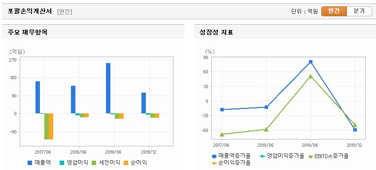 2020.08.05일에 유상증자를 했고, 그로 인해 주가 하락을 했다. 약간 웃긴 건 유상증자 발표를 5일에 했고 6일에 최대 20% 상승률을 보였었는데 이런 큰 폭의 상승도 이해가 안 가지만 부나방처럼 달려들어 고점에 묶인 개미들은 무슨 생각일까? 그냥 쉽게 이 회사의 매출액과 영업이익을 보더라도 꾸준히 적자가 계속되는 회사다. 요즘 유상증자가 상대적으로 호재로 보일 수 있지만 이런 재무제표를 갖고 있는 회사의 유상증자는 호재가 될 수 없지 않나?