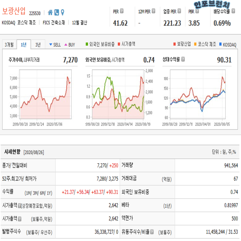 주 차트의 경우 2017년도부터 꾸준히 하락세를 면치 못하고 있다. 물론 전체적인 흐름에서 놓고 보자면 그렇다는 얘기고, 물론 중간중간 상승 하락 반복이 있었다. 다만 여기서 정상적이고 재무가 좋은 기업이라면 상승 하락 반복 중에도 꾸준히 우상향인 그래프를 여럿 보아왔을 때 보광산업의 경우는 그렇지 못하다는 점이며, 단지 주 차트만 언뜻 보면 바닥이 아닌가 하는 생각도 든다. 모든 이평선 선들이 우상향을 하고 있는 것을 볼 때 혹시?라는 생각이 먼저 들지만 일단 지켜보는 편이 좋을 것 같다. 만약 1차 저항선을 넘는다면 매수하는 것도 좋은 방법이라 생각하고, 힘이 약해 뚫지 못한다면 뒤도 돌지 말고 던져야 하지 않을까?